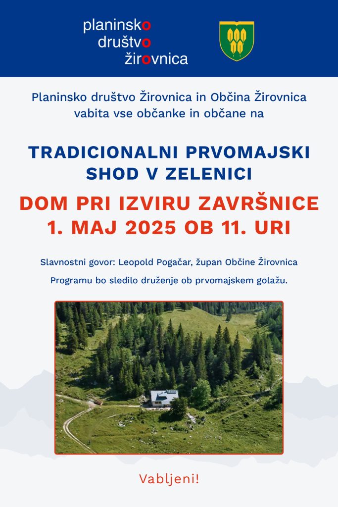 Planinsko društvo Žirovnica in občina Žirovnica vabita vse občanke in občane na TRADICIONALNI PRVOMAJSKI SHOD V ZELENICI